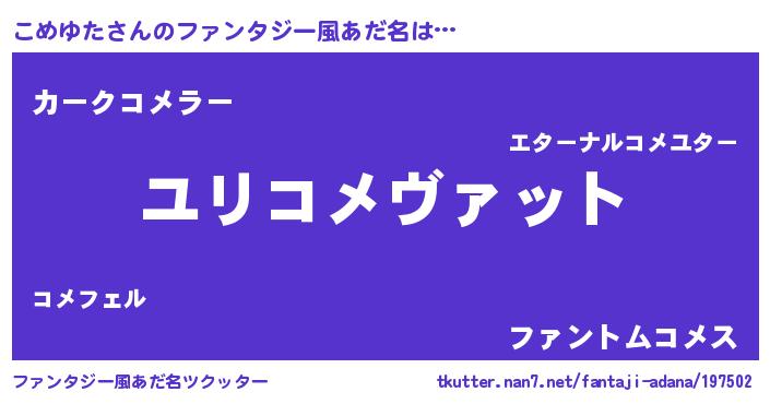 | 料理風あだ名 | 『こめゆたごはん』 |