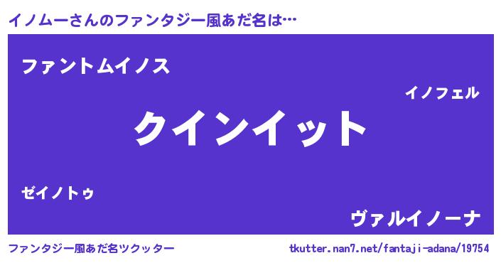 | 男性向けラノベタイトル風あだ名 | 『おまえをオタクにしてやるから、俺をイノムーにしてくれ! 』 |