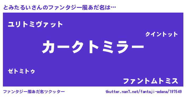 | ヒーロー風カッコイイあだ名 | 『銀牙騎士トミ』『慈愛の使者とみたるい』 |