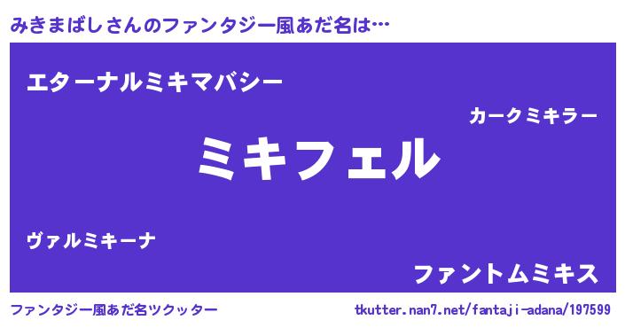 | 胡散臭い通販商品みたいなあだ名 | 『モテモテ間違いなし霊験あらたかなお札…その名も「みきまばし」』 |