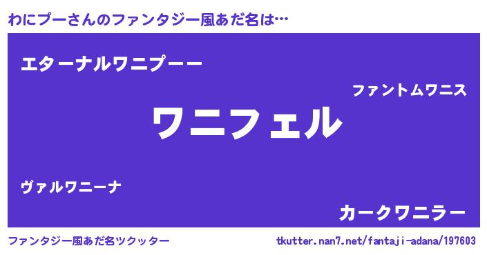 | ヒーロー風カッコイイあだ名 | 『スーパーワニプー』『暗黒騎士ワニ』 |