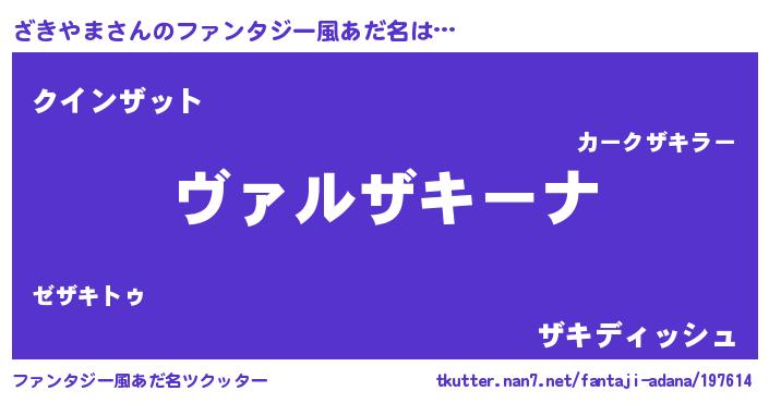 | ポケモン風あだ名 | 『ザーキイ』『ザキゴンZ』『ゼニザキ』 |