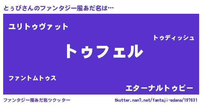 | 男性向けラノベタイトル風あだ名 | 『トゥビアートオンライン』 |