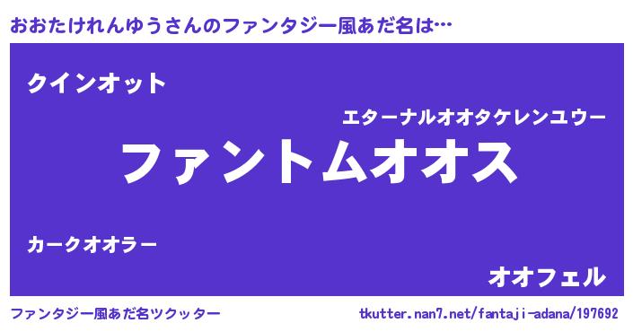 | 男性向けラノベタイトル風あだ名 | 『ダンジョンにおおたけれんゆうを求めるのは間違っているだろうか』 |