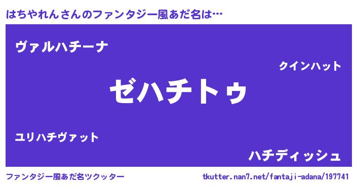 | 意味不明あだ名 | 『自称はちやれん』『永久保存はちやれん』 |