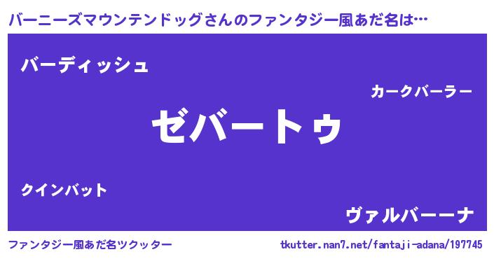 | 欧米人風あだ名 | 『ケンブリッジバーニーズマウンテンドッグ』 |
