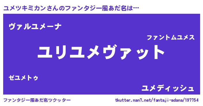 | 男性向けラノベタイトル風あだ名 | 『ユメツキミカンに滅ぼされるだけの簡単なお仕事です』 |