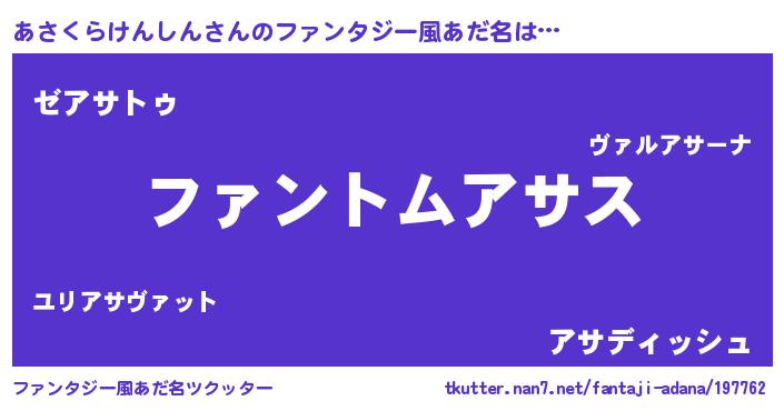 | ヒーロー風カッコイイあだ名 | 『魔戒騎士アサ』『ネオアサクラケンシン』 |