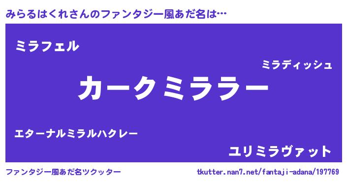 | ヘコむあだ名 | 『みらにー』『みらるはくれ(笑)』 |