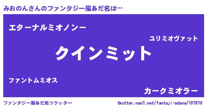 | 男性向けラノベタイトル風あだ名 | 『みおのんに滅ぼされるだけの簡単なお仕事です』 |