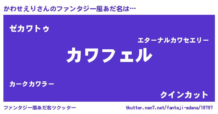 | 胡散臭い通販商品みたいなあだ名 | 『億万長者になれる水晶球…その名も「かわせえり」』 |