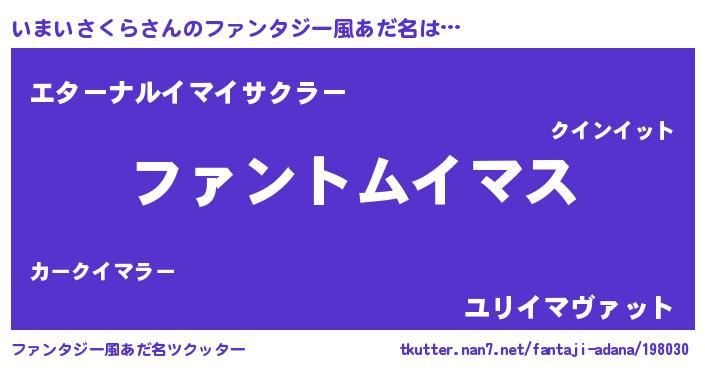 | 男性向けラノベタイトル風あだ名 | 『いまいさくらの嫁は女の子じゃないと思った?』 |