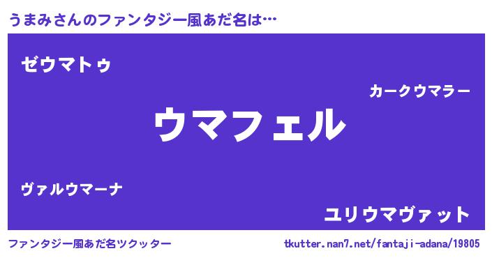 | 男性向けラノベタイトル風あだ名 | 『うまみの憂鬱』『魔法科高校のうまみ』 |