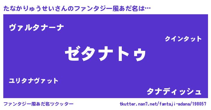| ヘコむあだ名 | 『たなかりゅうせい(小並感)』『たなっちょ』 |