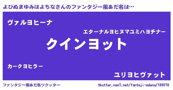 | 女子向けラノベタイトル風あだ名 | 『よひぬまゆみはよちな恋絵巻』 |