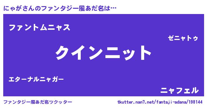 | 男性向けラノベタイトル風あだ名 | 『ノーゲーム・ノーニャガ』 |