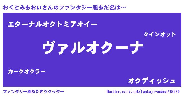 | 女子向けラノベタイトル風あだ名 | 『乙女ゲームの破滅フラグしかない悪役おくとみあおいに転生してしまった…』 |
