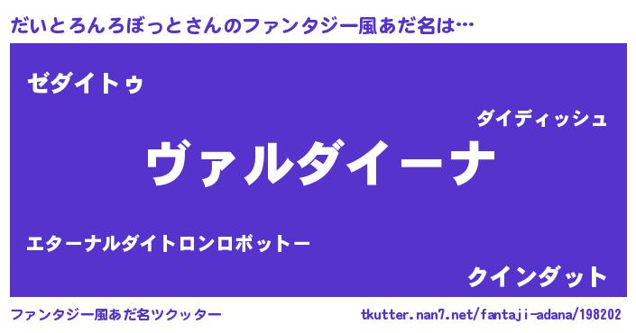 | 意味不明あだ名 | 『住所不定無職だいとろんろぼっと(91歳)』 |