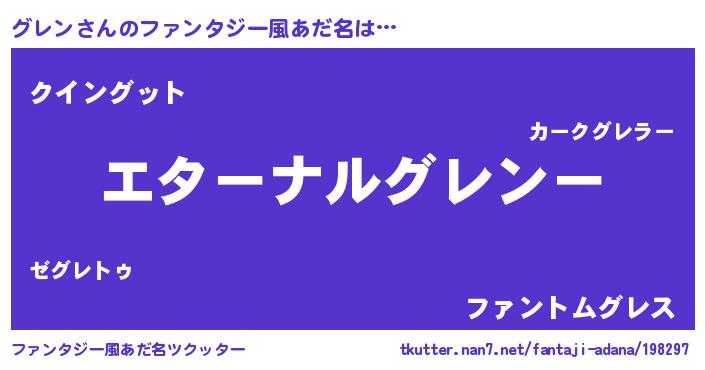 | 意味不明あだ名 | 『グレンフォーエバー』『自称グレン』 |