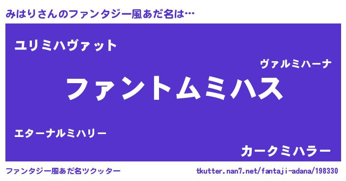 | 男性向けラノベタイトル風あだ名 | 『みはりの嫁は女の子じゃないと思った?』 |