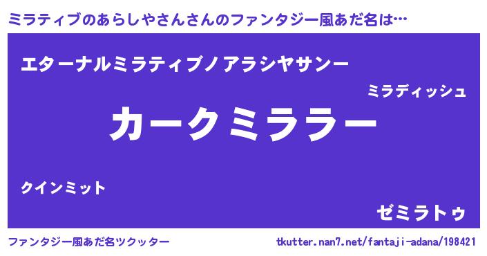 | 意味不明あだ名 | 『ミラティブのあらしやさんフォーエバー』 |