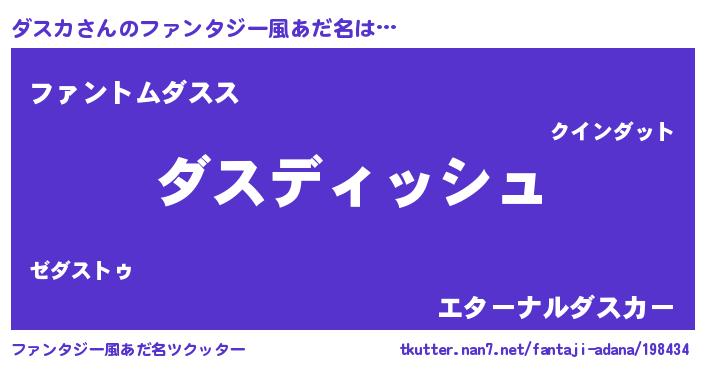 | 男性向けラノベタイトル風あだ名 | 『ダスカという概念が存在しない退屈な世界 』 |