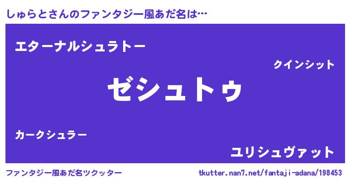 | 伝説のあだ名 | 『秘められし忍者しゅらと』 |