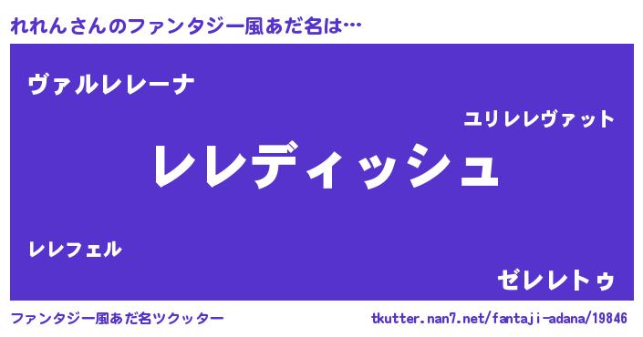 | 男性向けラノベタイトル風あだ名 | 『れれんという概念が存在しない退屈な世界 』 |