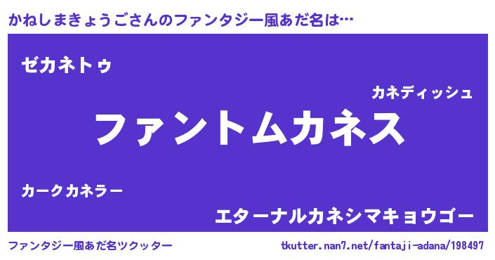 | ヒーロー風カッコイイあだ名 | 『炎刃騎士カネ』『ネオカネシマキョウゴ』 |