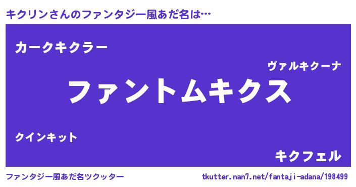 | 自動車の名前っぽいあだ名 | 『キント』『フェキーク』『キウディ』 |
