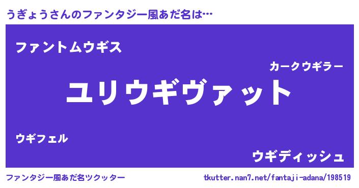 | ヘコむあだ名 | 『うぎぷりん』『うぎょう(笑)』 |
