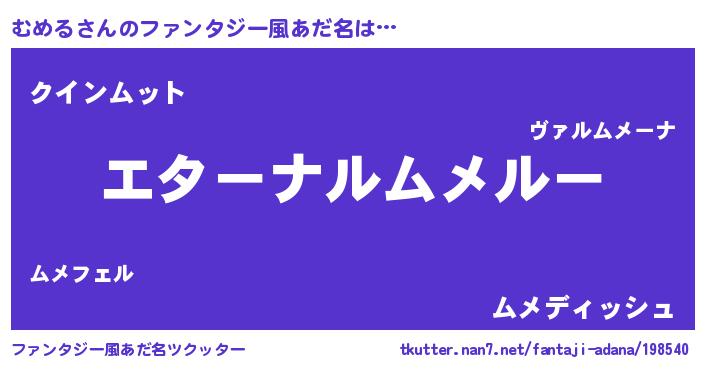 | ポケモン風あだ名 | 『ムメルダネ』『ムックウザ』 |