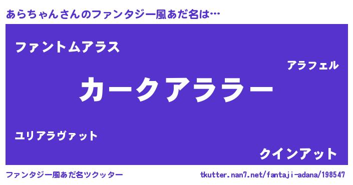 | ヒーロー風カッコイイあだ名 | 『幻影騎士アラ』『正義の使者あらちゃん』 |