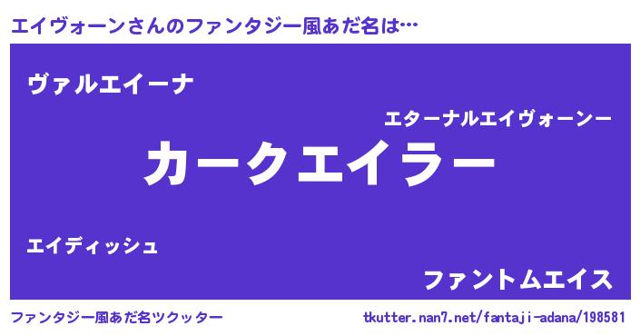 | 意味不明あだ名 | 『住所不定無職エイヴォーン(47歳)』 |