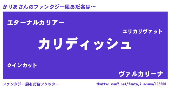 | 男性向けラノベタイトル風あだ名 | 『かりあという概念が存在しない退屈な世界 』 |