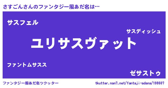 | 男性向けラノベタイトル風あだ名 | 『サスゴンスレイヤー』『さすごんの憂鬱』 |