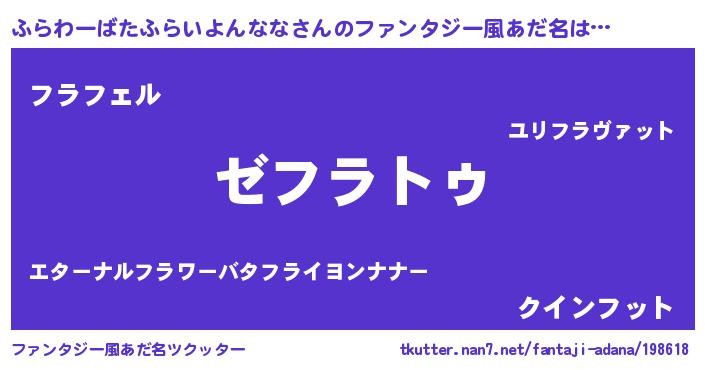 | 意味不明あだ名 | 『自称ふらわーばたふらいよんなな』 |
