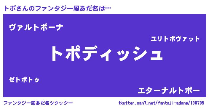 | ポケモン風あだ名 | 『ゼニトポ』『トーポイ』『トポダネ』 |
