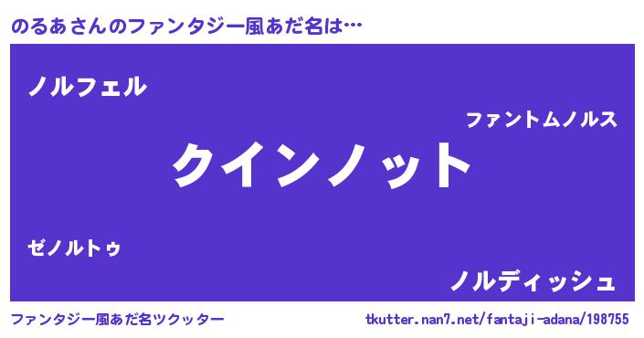 | 男性向けラノベタイトル風あだ名 | 『ノーゲーム・ノーノルア』 |