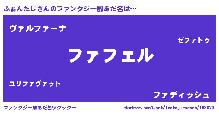 | 意味不明あだ名 | 『ペロリンふぁんたじ』『自称ふぁんたじ』 |