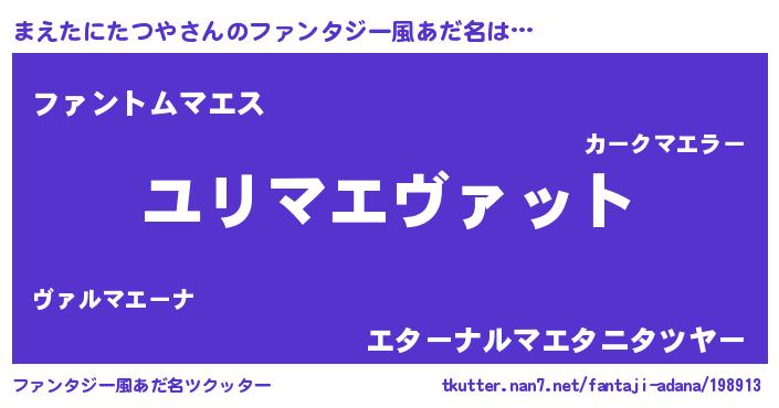 | 男性向けラノベタイトル風あだ名 | 『転生したらまえたにたつやだった件』 |