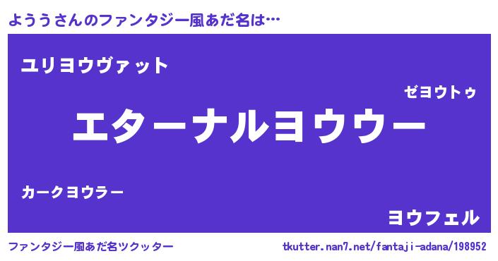 | 意味不明あだ名 | 『よううフォーエバー』『ペロリンようう』 |