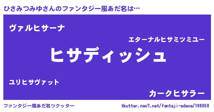 | 伝説のあだ名 | 『古文書に記された吟遊詩人ひさみつみゆ』 |