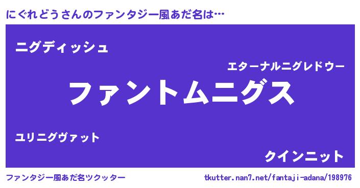 | ポケモン風あだ名 | 『ヒニグレドウ』『ゼニニグ』 |