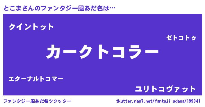 | 欧米人風あだ名 | 『とこま・ステッグマイヤー』 |