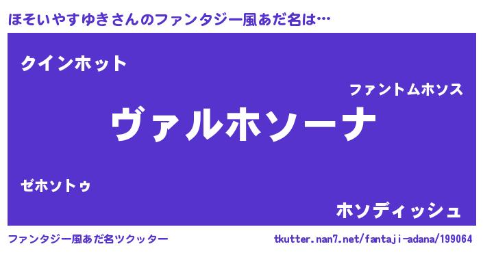 | 男性向けラノベタイトル風あだ名 | 『この素晴らしい世界にほそいやすゆきを!』 |