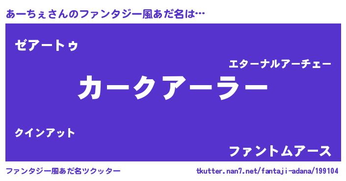 | ヒーロー風カッコイイあだ名 | 『ウルトラ戦士アーチェ』『幻影騎士アー』 |