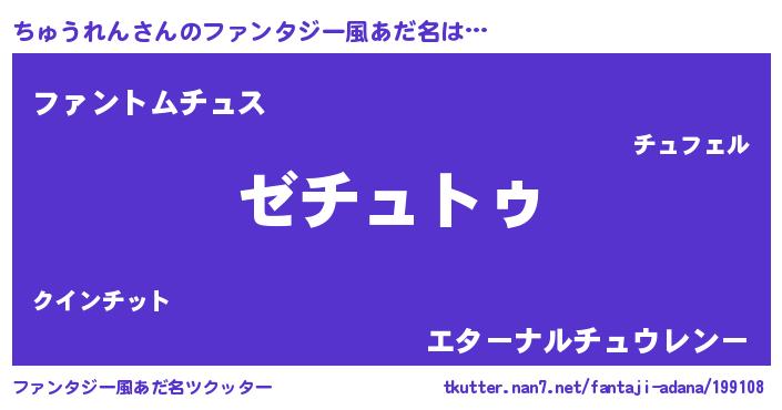 | 意味不明あだ名 | 『自称ちゅうれん』『ペロリンちゅうれん』 |