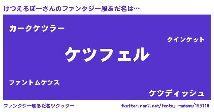 | 男性向けラノベタイトル風あだ名 | 『けつえるぼーの憂鬱』 |