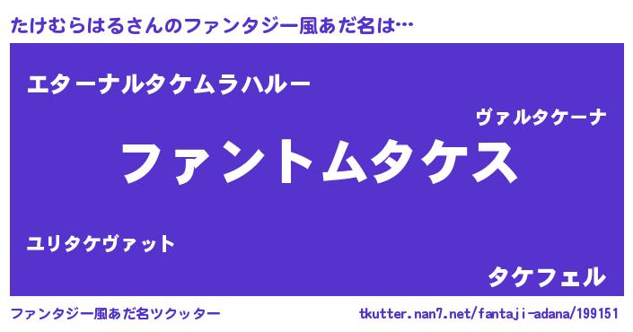 | 男性向けラノベタイトル風あだ名 | 『ダンジョンにたけむらはるを求めるのは間違っているだろうか』 |
